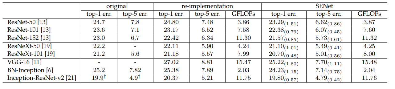 다음과 같이 Residual Block에 Squeeze-and-excitation구조를 적용함으로써 기존의 네트워크의 성능을 높일 수 있습니다.