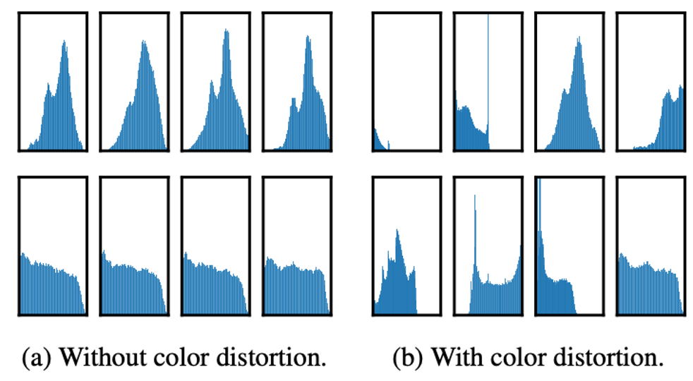 contrastive learning은 한 이미지 내에서 positive sample을 추출한다. 따라서 positive sample들은 비슷한 color histogram을 가지게 된다. 이를 그대로 contrastive learning에 사용할 경우 네트워크는 다른 유용한 정보 대신 color histogram만으로 positive sample과 negative sample을 구분하게 되어 모델의 성능이 낮아지게된다.