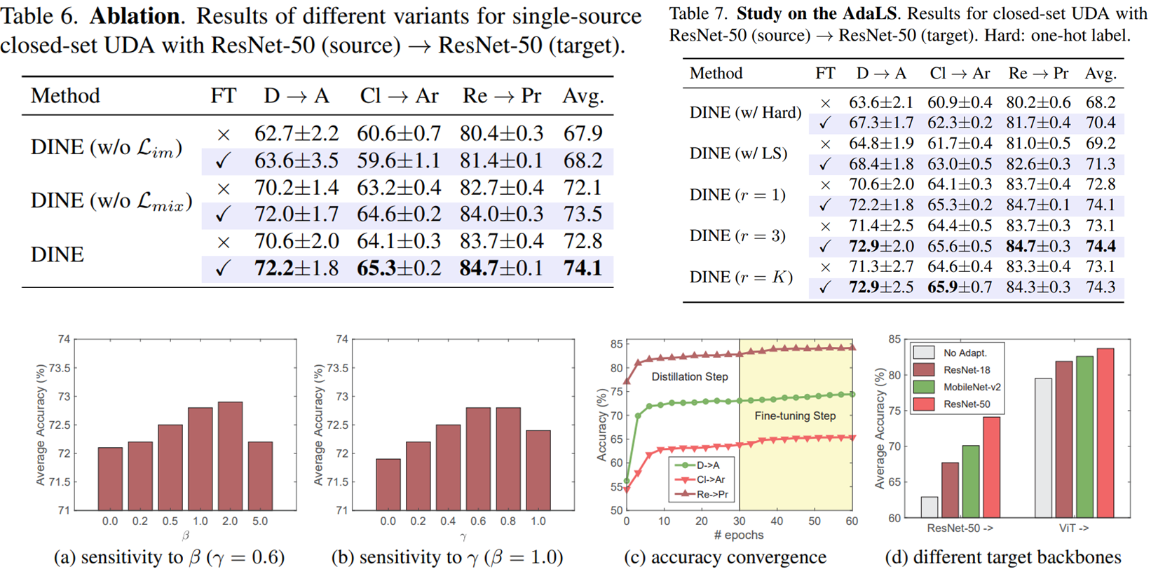 \[\mathcal{L}_t=\mathcal{D}_{kl}(P^T(x_t)||f_t(x_t))+\beta\mathcal{L}_{mix}-\mathcal{L}_{im}\]FineTune