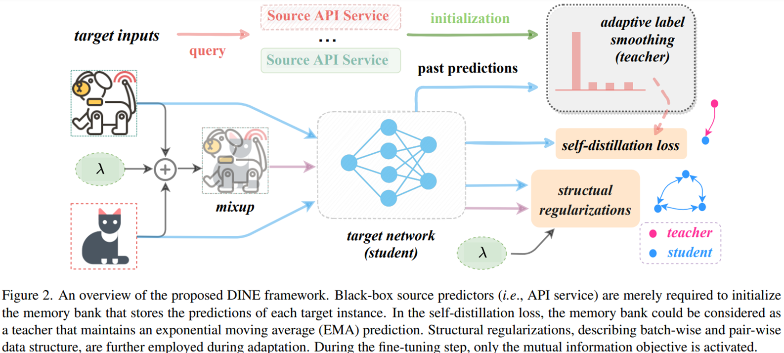 저자는 기존의 UDA는 위의 두 가지 문제점을 가지고 있다고 판단하여 source model이 완전히 black-box인 상황에서도 작동하는 DINE을 제시했다.