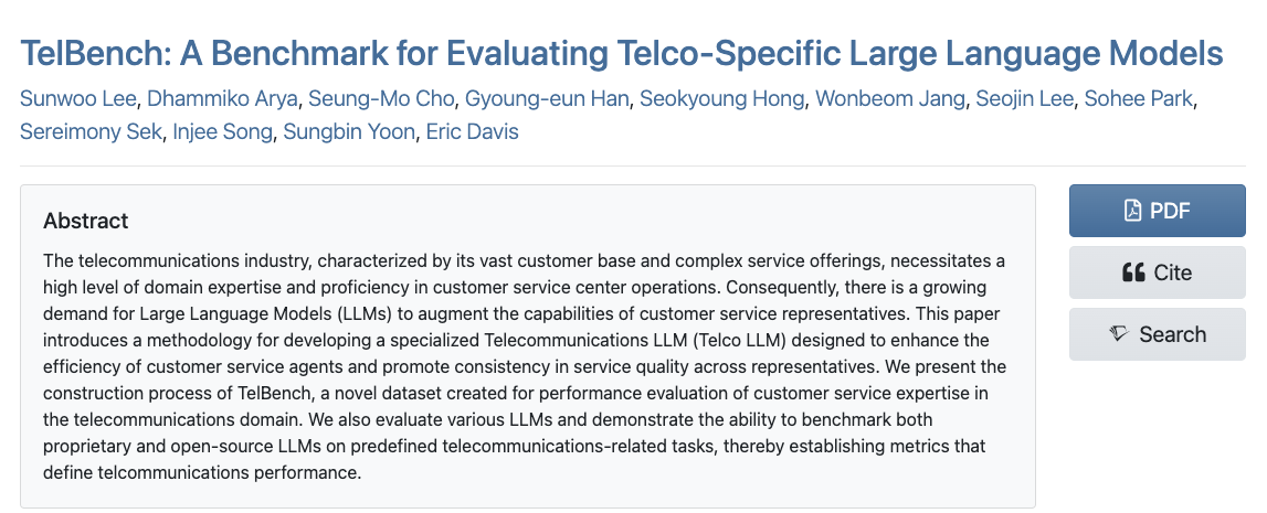 이번에 TelBench 논문이 EMNLP2024 Industry Track에 채택되었다. 뿌듯한 결과이며, 내년에도 논문 작업을 지속하고 싶다. -