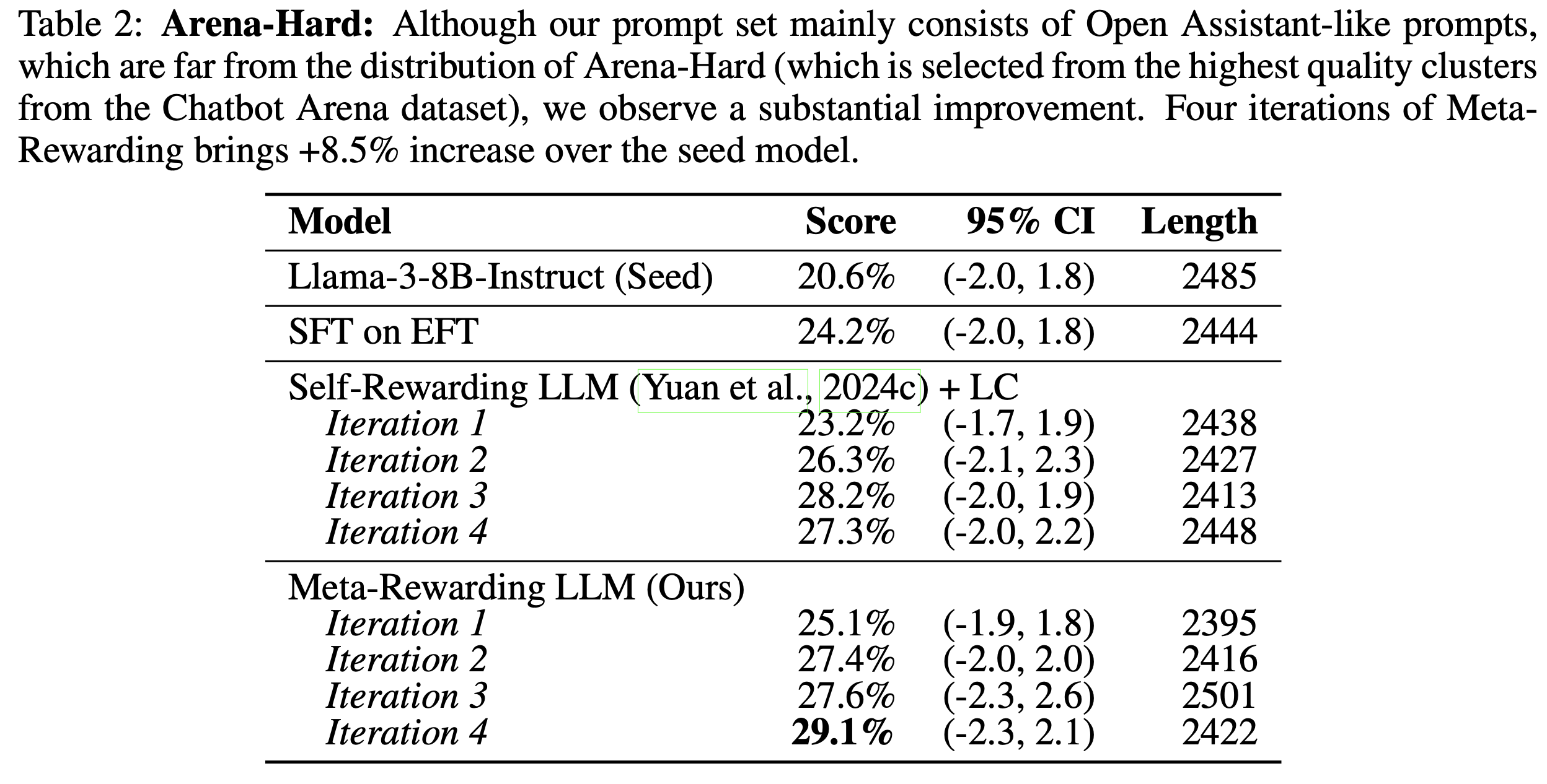 - Meta-Rewarding (Judge pair 포함): LC win rate가 꾸준히 향상된다