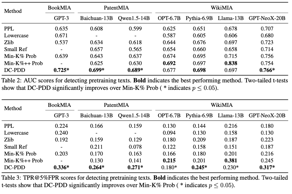 - DC-PDD는 참조 코퍼스 빈도가 매우 낮으므로 divergence가 크다고 판단 → 학습 데이터에 포함되었을 가능성 높다