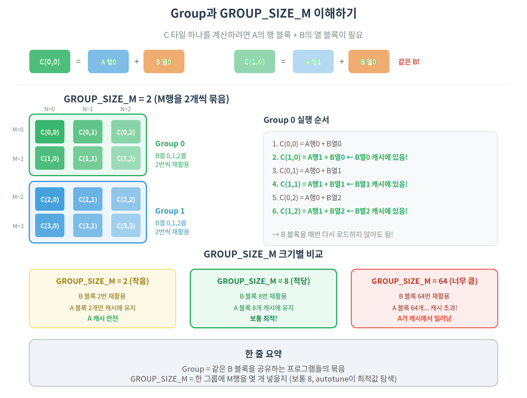 블록 크기에 따라 성능이 크게 달라집니다. Autotune은 여러 설정을 실행해보고 가장 빠른 것을 선택합니다: