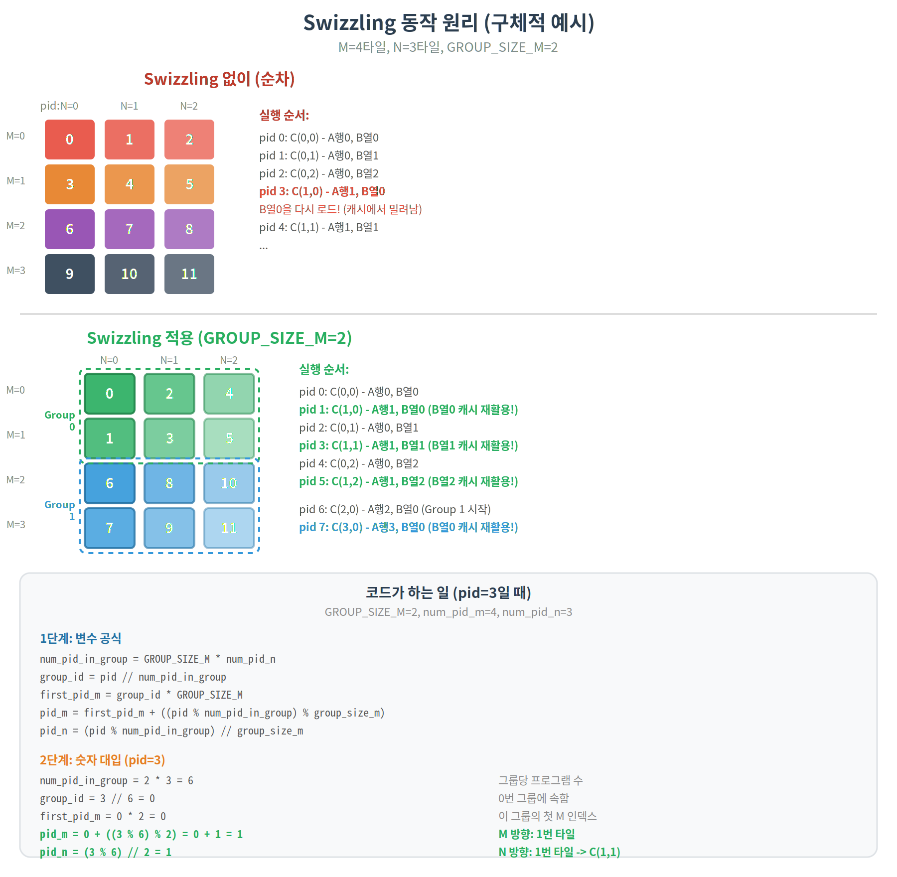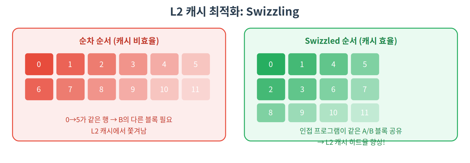 Swizzling = “같은 B 블록을 쓰는 프로그램들을 묶어서 실행”