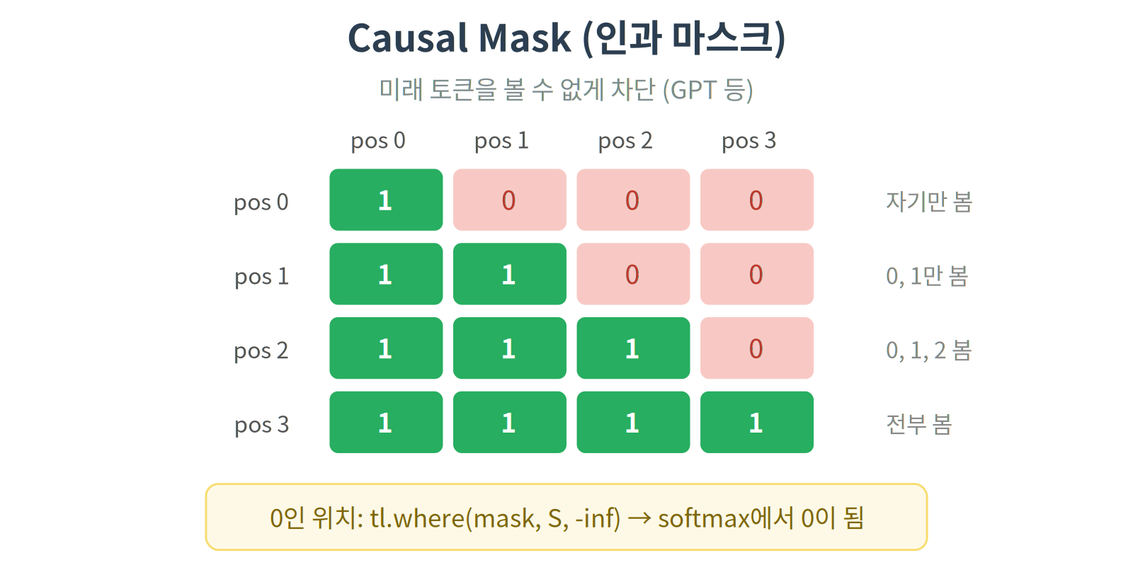 Autoregressive 모델(GPT 등)에서는 미래 토큰을 볼 수 없습니다: